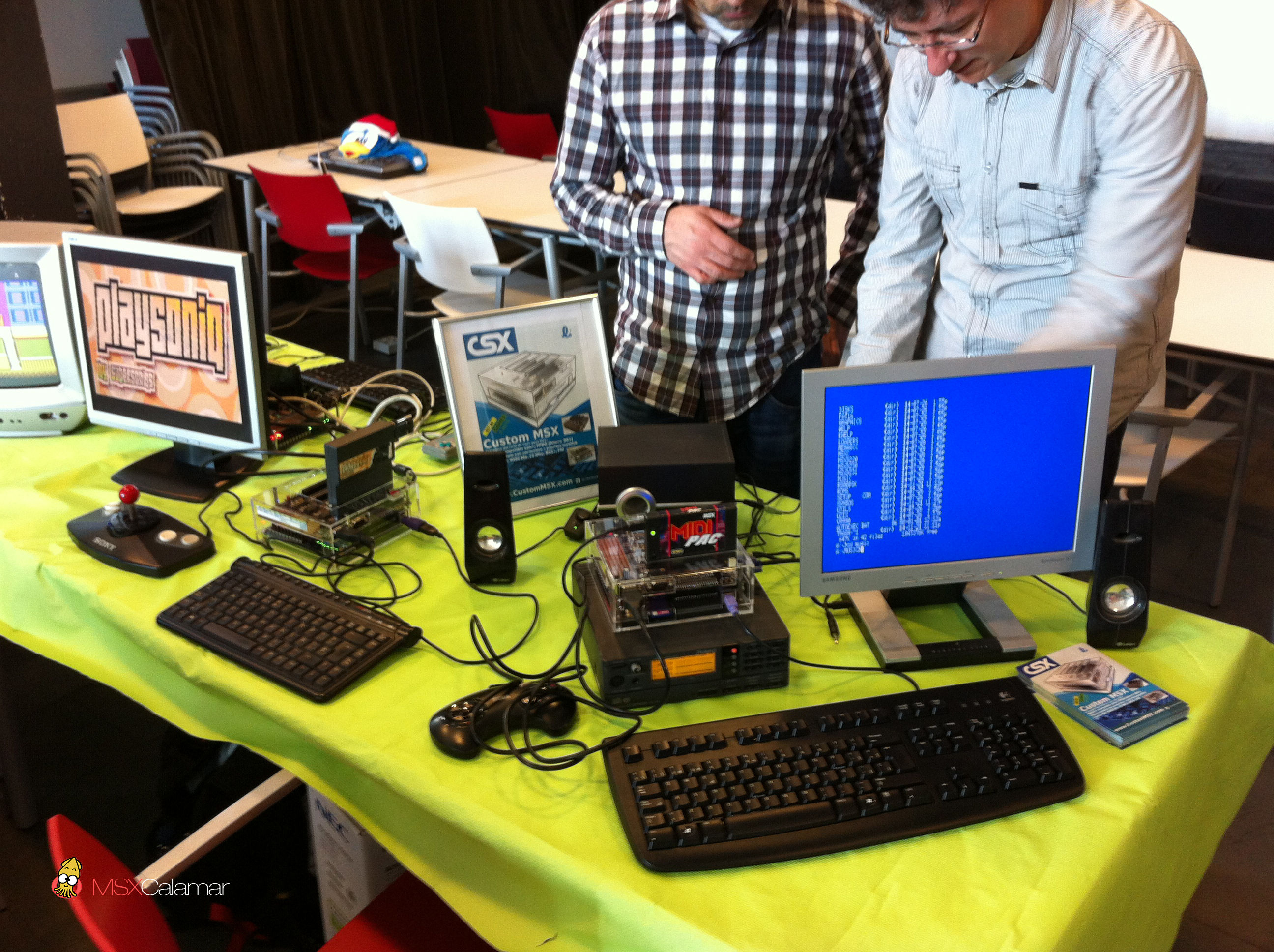 Cuando MSX Calamar llegó pasadas las 10:30 de la mañana ya estaban prácticamente todos los stands preparando sus mesas y después de los saludos a amigos y compañeros nos pusimos a trabajar para dejarlo todo listo para la hora de apertura.