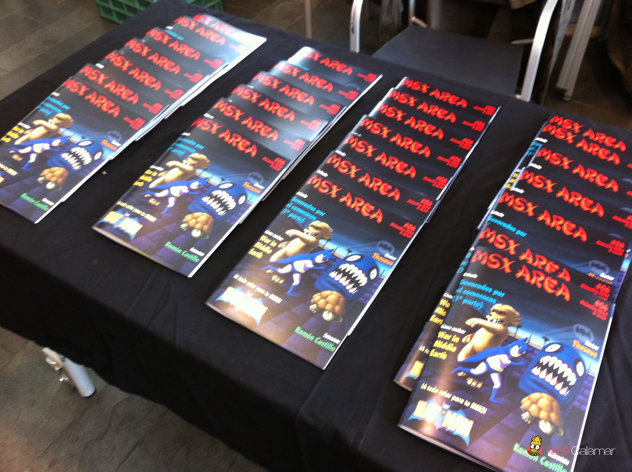 El grupo editor de la revista nos ofrecía su último número en papel por sólo 8 euros. Un número cargado de contenido, como son resúmenes de las tres últimas RUs, comentarios de concursos como la MSXdev’13 y el Game Music Cover Challenge, guías de juegos, un interesante y completo artículo sobre el Comecocos en el MSX, entrevistas a los creadores del Batman para MSX2 y a Ramón Castillo, miembro del MSX Boixos Club, además de trucos y la sección taller donde nos explican cómo reparar un teclado de membrana.