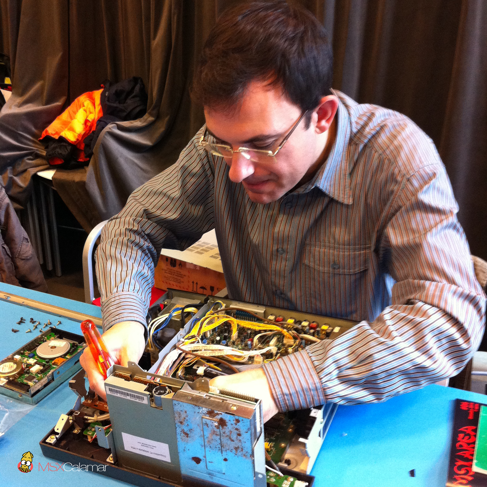 En el mismo stand realizamos algunas reparaciones de MSX, como la sustitución de disqueteras que algunos usuarios nos trajeron a la Reunión.
